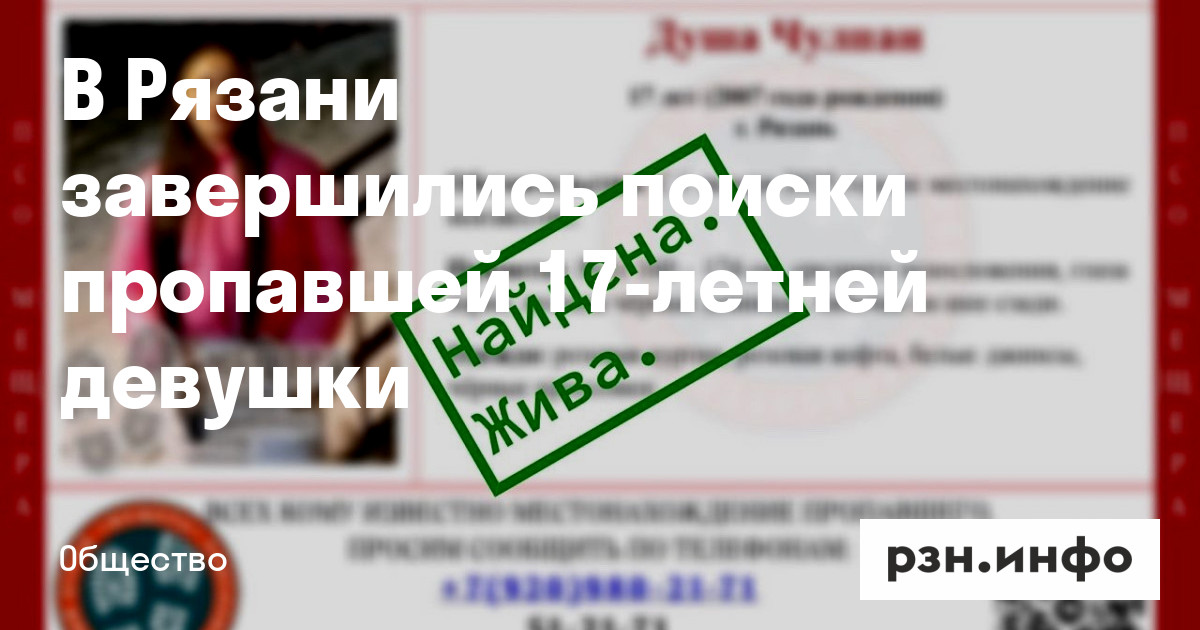 В Рязани завершились поиски пропавшей 17-летней девушки