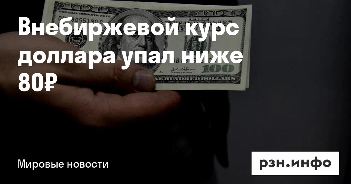 Внебиржевой курс доллара упал ниже 80₽. Об этом сообщает РИА Новости.
