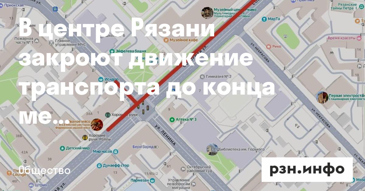 В центре Рязани закроют движение транспорта до конца месяца. Об этом сообщает пресс-служба мэрии.