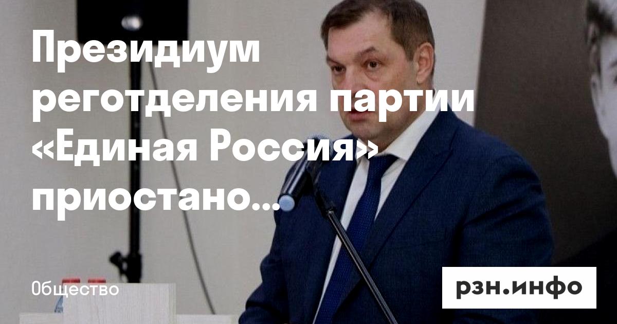 Президиум реготделения партии «Единая Россия» приостановил полномочия мэра Рязани Виталия Артемова в качестве секретаря местного отделения и члена президиума. Об этом сообщили на сайте партии.