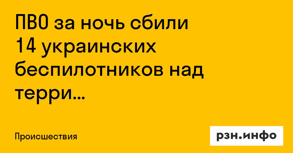 ПВО за ночь сбили 14 украинских беспилотников над территорией Рязанской области.