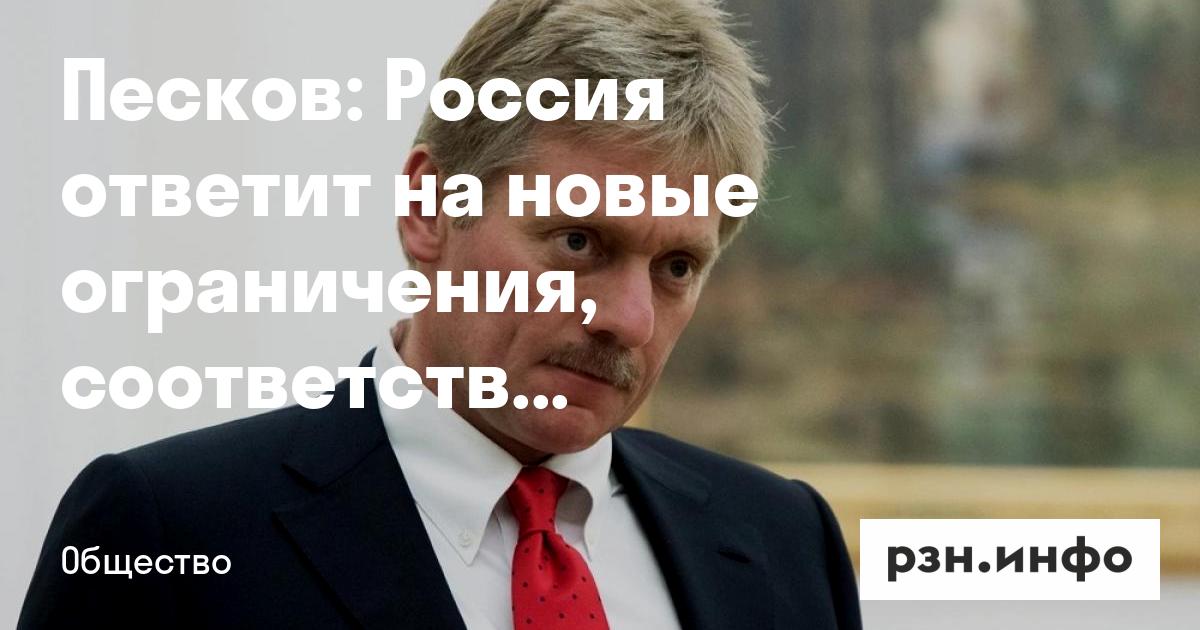 Песков: Россия ответит на новые ограничения, соответствуя своим интересам