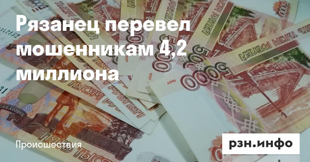 Житель Новомичуринска перевел мошенникам 4,2 миллиона рублей. Об этом сообщает ИД «Пресса».