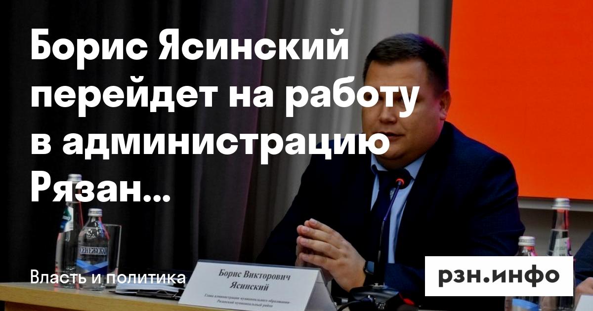 Борис Ясинский перейдет на работу в администрацию Рязани. Об этом пишет ИД «Пресса» со ссылкой на вице-губернатора Артема Бранова.