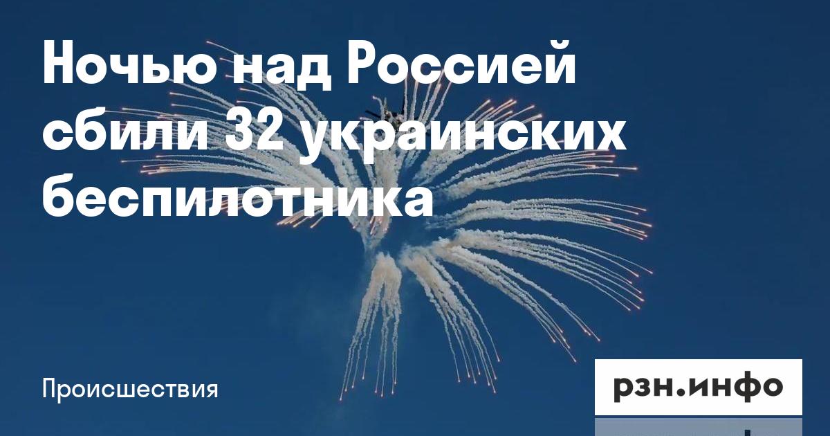 Дежурными средствами ПВО перехвачены и уничтожены 32 украинских беспилотных летательных аппарата самолетного типа. Из них по 11 БПЛА сбили над территориями Белгородской и Воронежской областей, пять БПЛА перехвачены над территорией Нижегородской области, и по одному беспилотнику в небе Брянской, Курской, Тульской, Тамбовской областей и в Республике Мордовия.