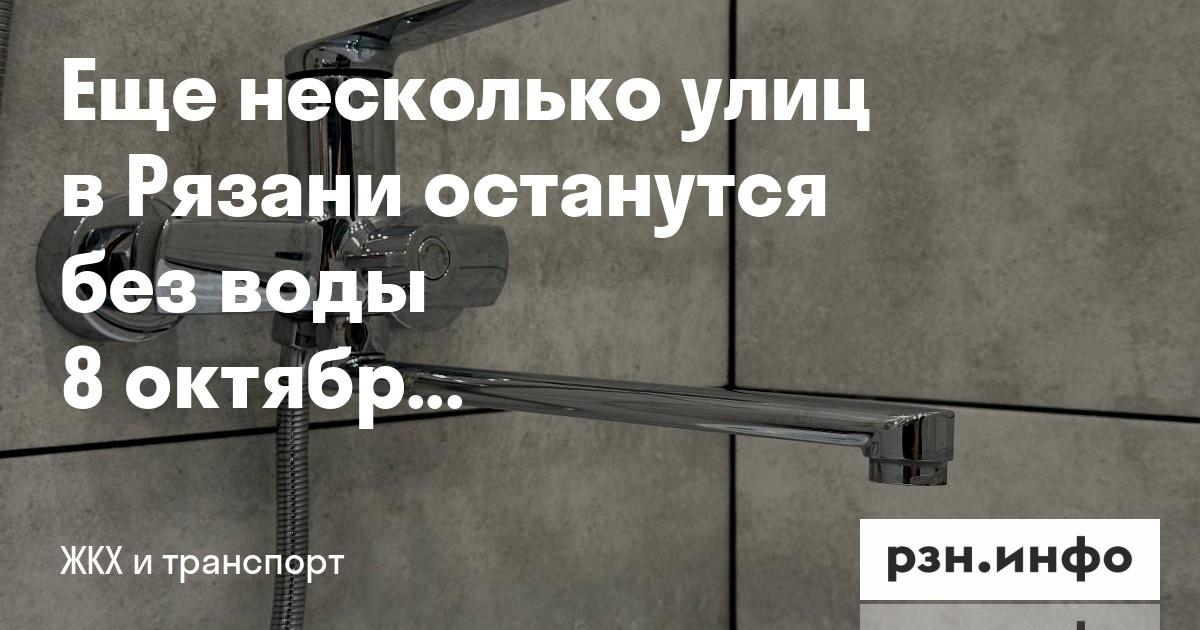 Еще несколько улиц в Рязани останутся без воды 8 октября. Об этом сообщила пресс-служба «Водоканала».