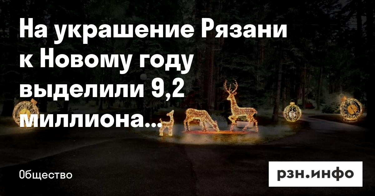 Правительство Рязанской области объявило тендер на покупку новогоднего светового оформления города. Общая сумма выделенных средств составит девять миллионов 258 тысяч 991 рубль, следует из тендера на сайте госзакупок.