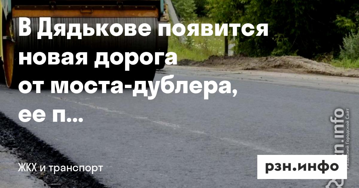 Для Дядькова разработан проект планировки улиц для подъездов к мосту-дублеру через Оку. Соответствующее постановление главного управления архитектуры и градостроительства Рязанской области опубликовано 30 октября на сайте газеты «Рязанские ведомости».
