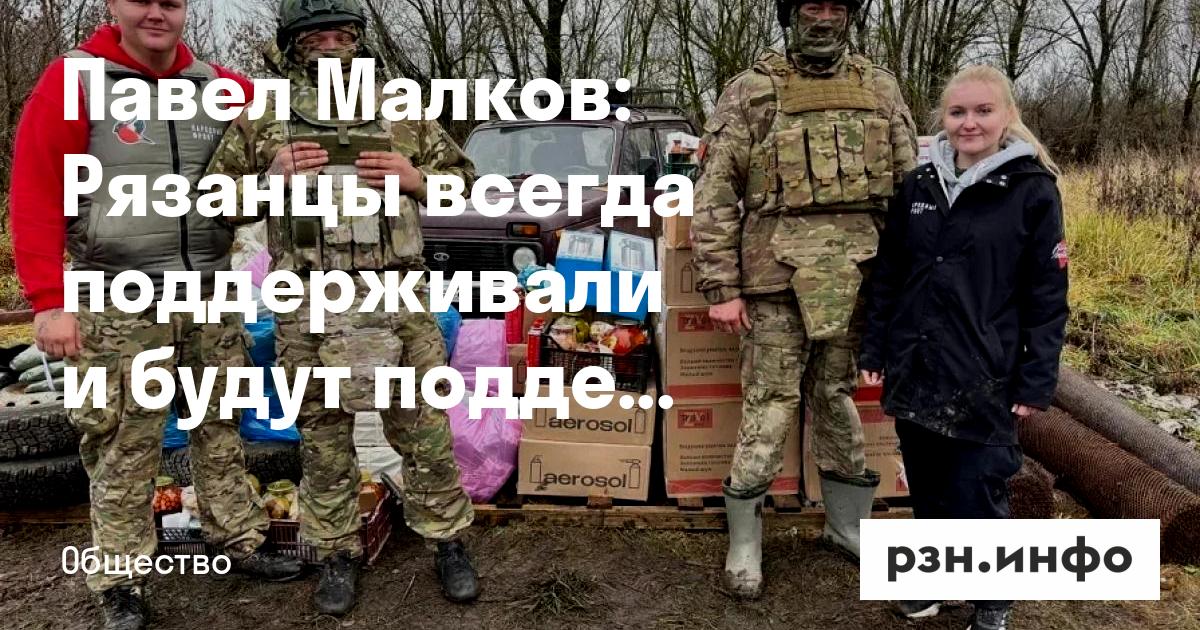 Павел Малков сказал: «Собрали все самое необходимое: термобелье, дождевики, непромокаемые костюмы, средства гигиены, дизельные отопители и многое другое. В сборе помощи для бойцов принимали участие общественные организации, предприниматели и неравнодушные рязанцы. Например, Елена, мать одного из наших защитников, который служит на Запорожском направлении, передала очередную посылку с домашними консервами. Как говорит сама Елена: «Там все наши!».