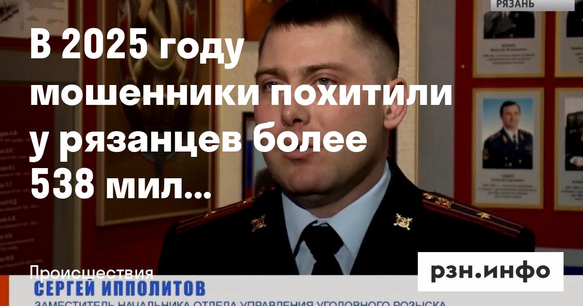 Заместитель начальника отдела управления уголовного розыска УМВД по региону Сергей Ипполитов рассказал, что в 2025 году мошенники похитили у жителей Рязанской области более 538 миллионов рублей. По его словам, сумма в текущем и прошлом годах сохраняется примерно на одном уровне.