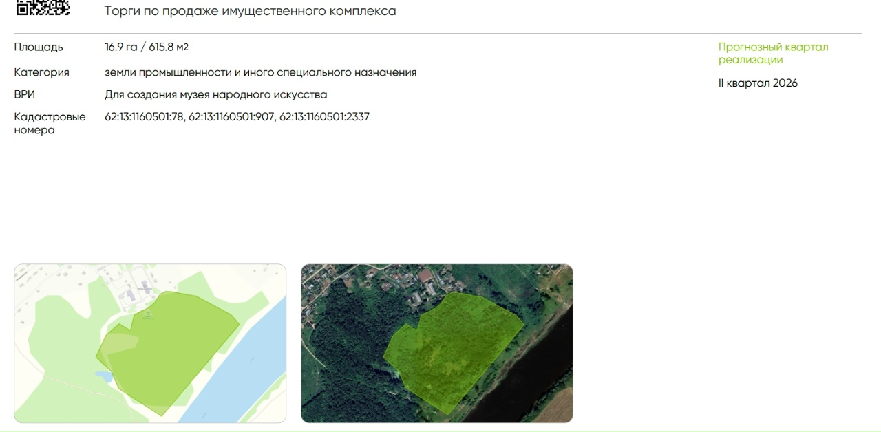 Начальная цена еще не определена. Общая площадь земли — 16,87 га. Реализовать проект планируют во втором квартале 2026 года.
