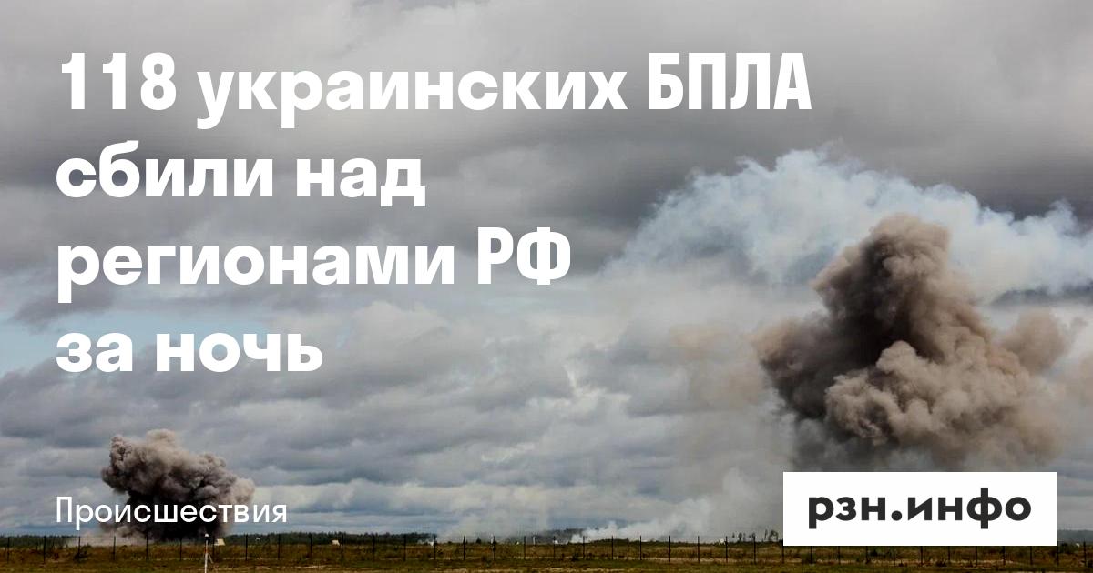 118 украинских БПЛА сбили над регионами РФ за ночь. Об этом сообщает Минобороны.