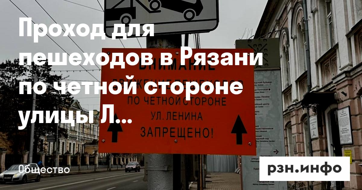 Проход для пешеходов в Рязани по четной стороне улицы Ленина закрыли