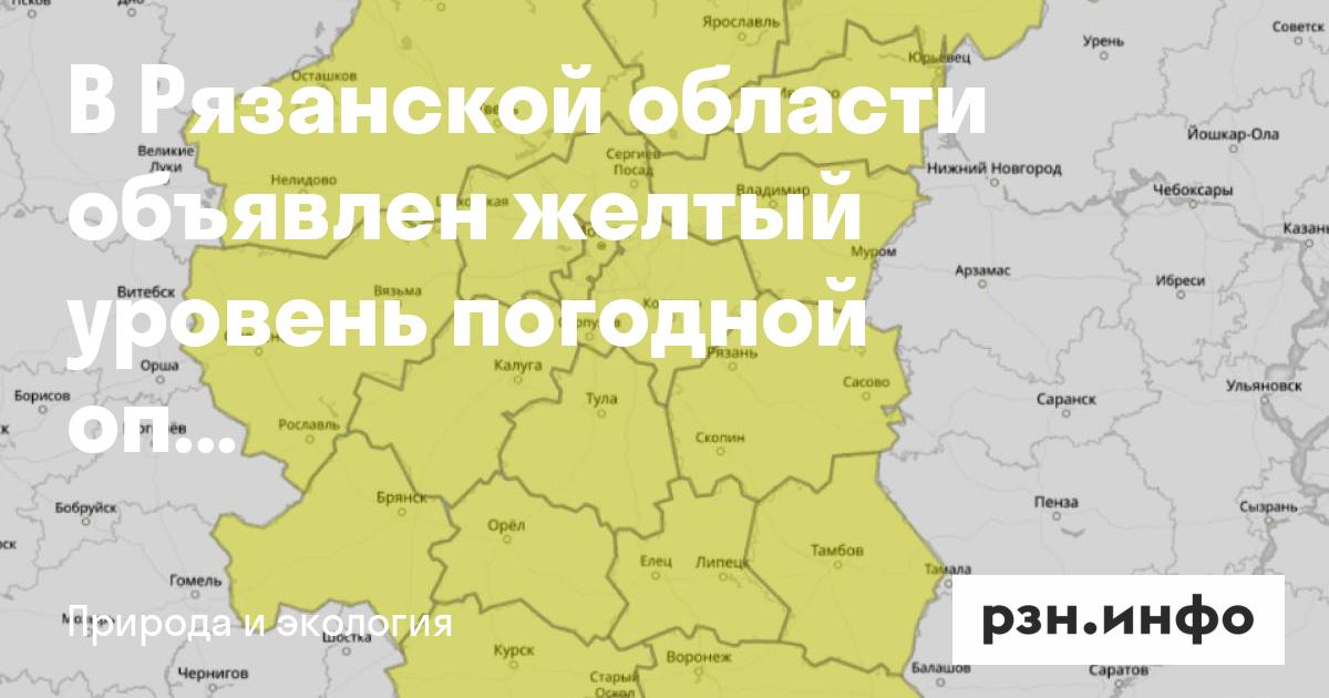 В Рязанской области объявлен желтый уровень погодной опасности. Об этом сообщает региональный ЦГМС.