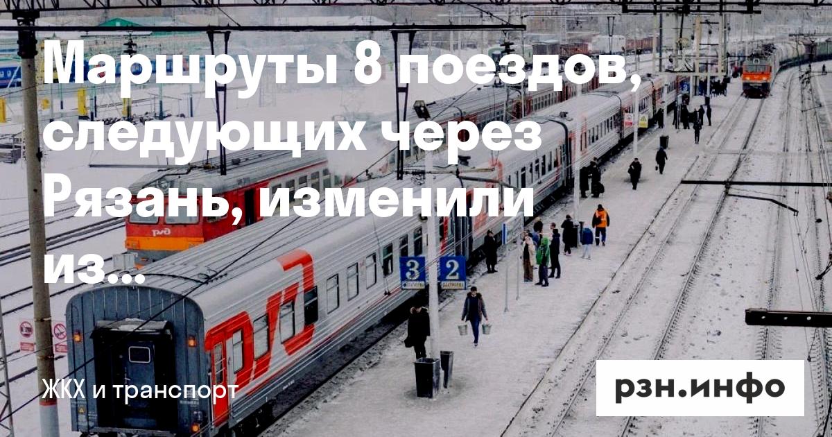 Маршруты 8 поездов, следующих через Рязань, изменили из-за ЧП в Пензенской области. Об этом сообщает пресс-служба РЖД.