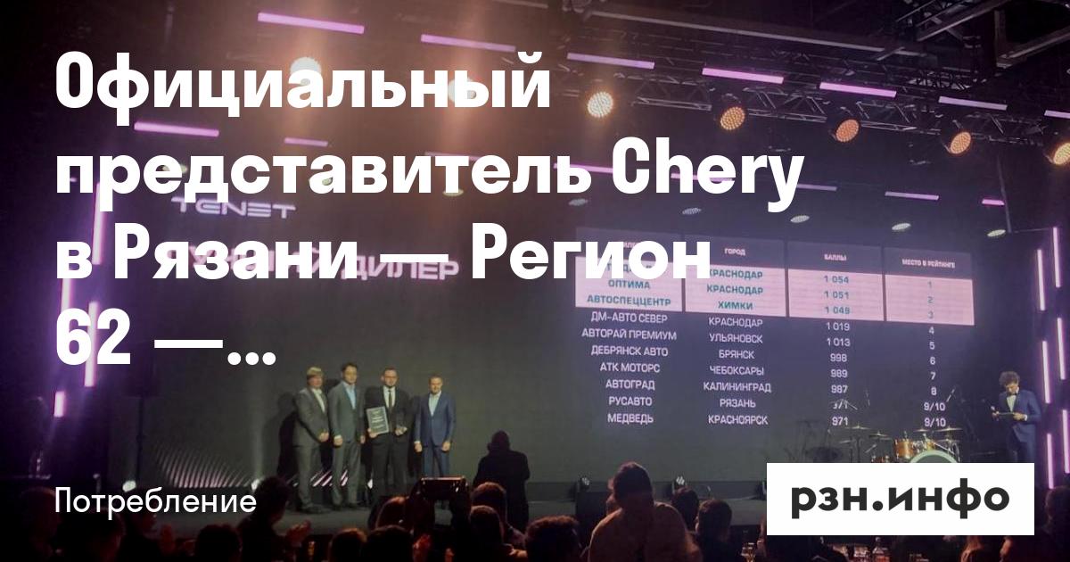 Официальный представитель Chery в Рязани — Регион 62 — вошел в топ-10 дилеров