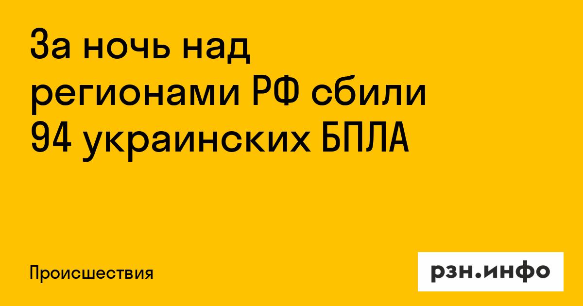 За ночь над регионами РФ сбили 94 украинских БПЛА. Об этом сообщает Минобороны.
