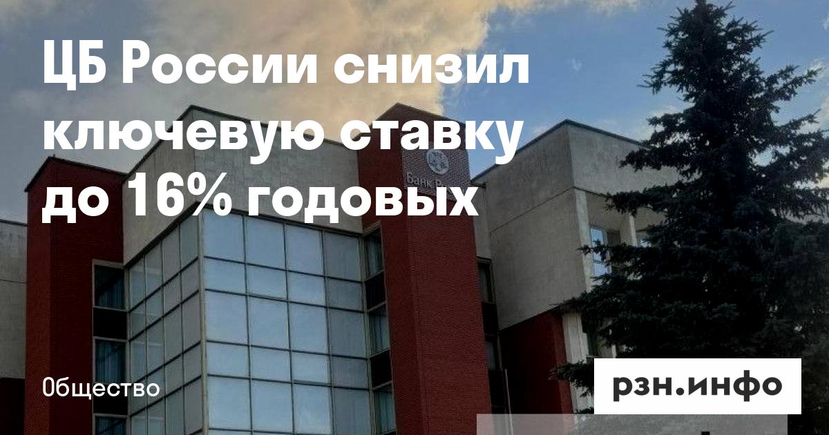 Центробанк России 19 декабря снизил ключевую ставку с 16,5% до 16% годовых. Об этом сообщается на сайте регулятора.