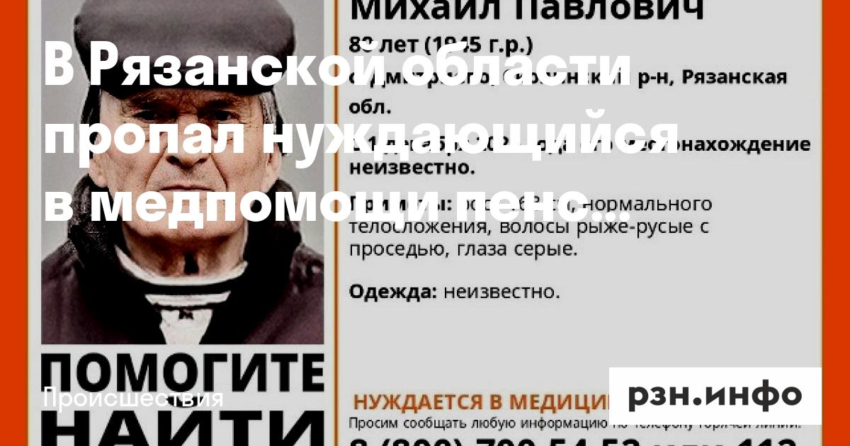 В Рязанской области пропал нуждающийся в медпомощи пенсионер