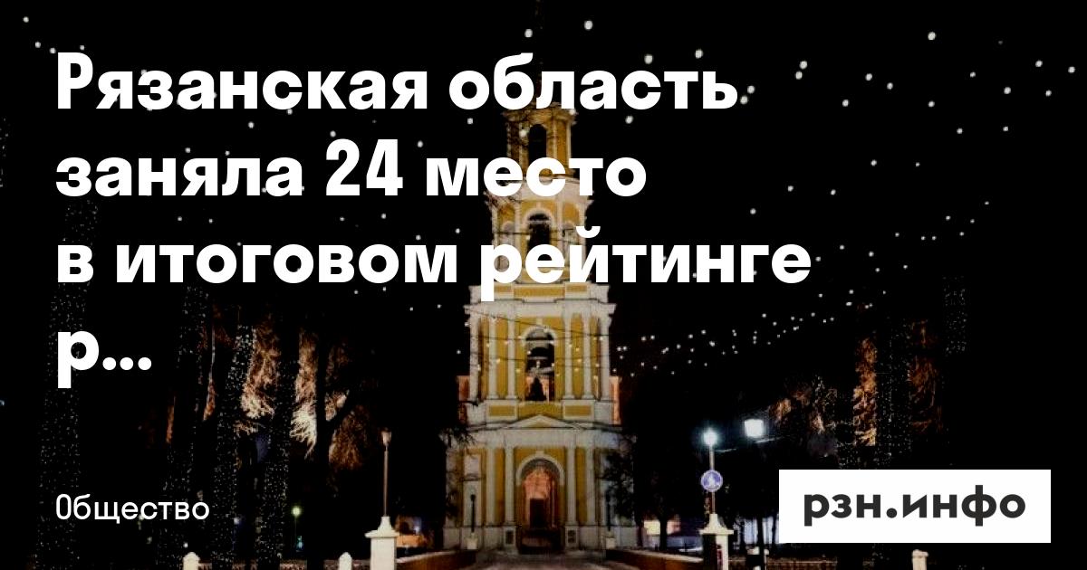 Рязанская область заняла 24 место в итоговом рейтинге регионов. Соответствующие данные 22 декабря в РИА Новости.
