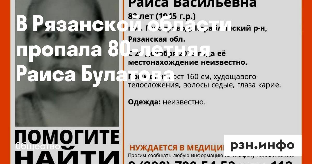 В Рязанской области пропала 80-летняя Раиса Булатова. Об этом сообщает ПСО «Лиза Алерт».