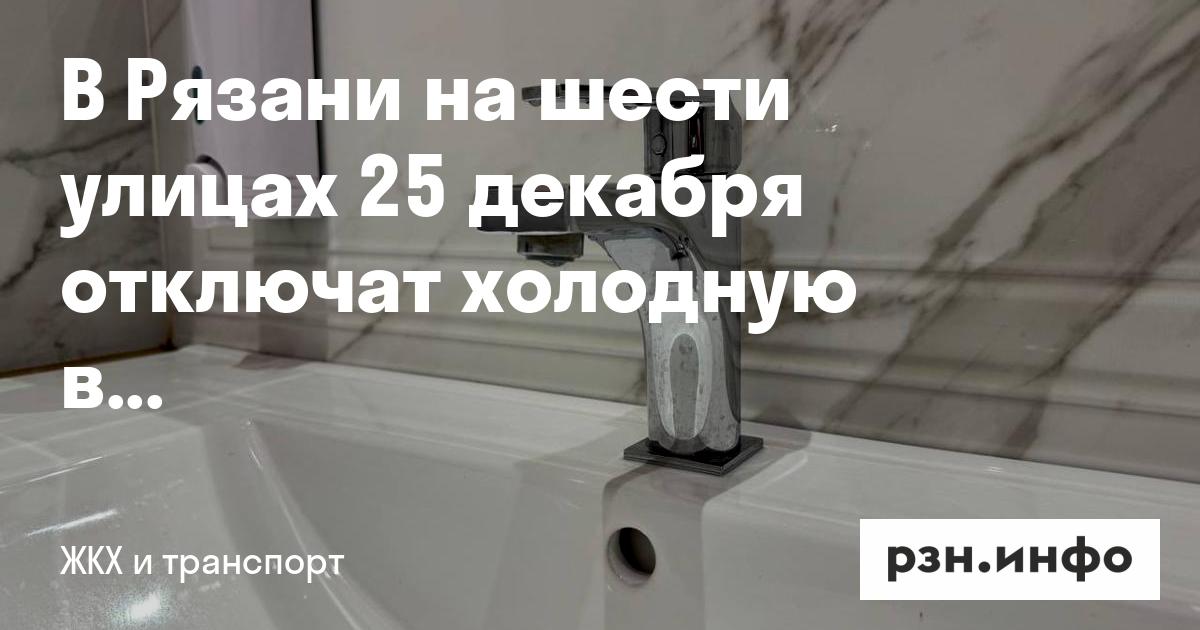 В Рязани на шести улицах 25 декабря отключат холодную воду