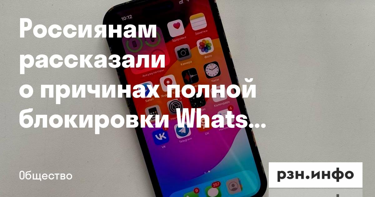 Россиянам рассказали о причинах полной блокировки WhatsApp*. Об этом сообщает ТАСС. с