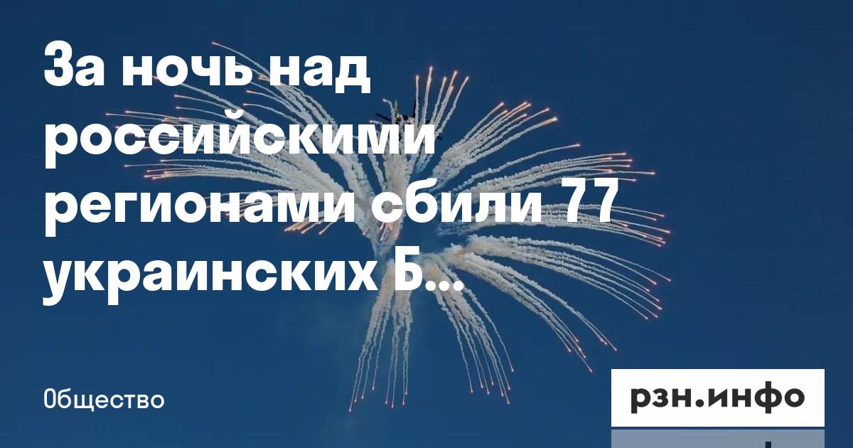 За ночь над российскими регионами сбили 77 украинских БПЛА. Об этом сообщает пресс-служба минобороны.