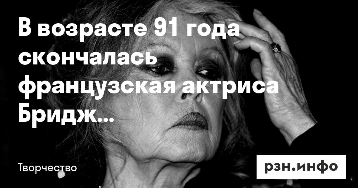 В возрасте 91 года скончалась французская актриса Бриджит Бардо. Об этом написали в ТАСС со ссылкой на Agence France-Presse (AFP) и «Фонд Брижит Бардо».