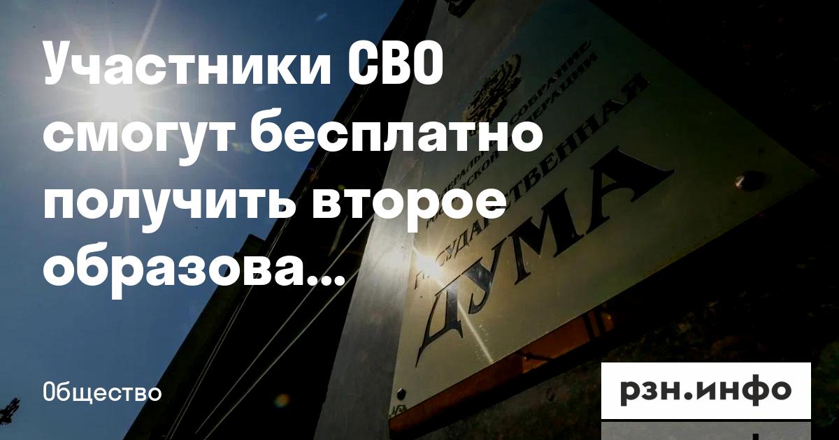 3 декабря Госдума одобрила в двух чтениях законопроект, который предоставляет участникам СВО возможность повторно получить среднее профессиональное образование по другой профессии или специальности бесплатно. Закон предоставляет определённые права следующим категориям лиц: тем, кто участвовал в отражении вооружённого нападения на территорию России, включая случаи вооружённых провокаций на государственной границе и в прилегающих к зоне СВО регионах; сотрудникам правоохранительных органов Российской Федерации, а также гражданам, выполнявшим служебные обязанности или аналогичные функции в зоне СВО и на территориях регионов, прилегающих к этой зоне; и ополченцам Донбасса.