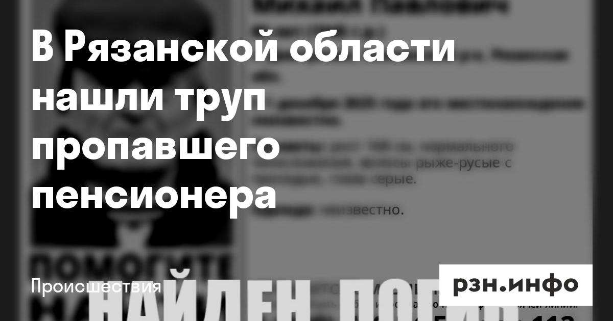 В Рязанской области нашли труп пропавшего пенсионера. Об этом сообщает ПСО «ЛизаАлерт».