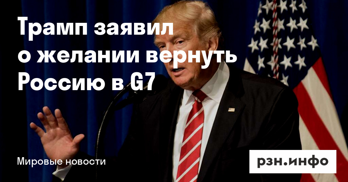Президент США Дональд Трамп заявил о желании вернуть Россию в G7. Об этом сообщили «Известия» со ссылкой на Bloomberg.