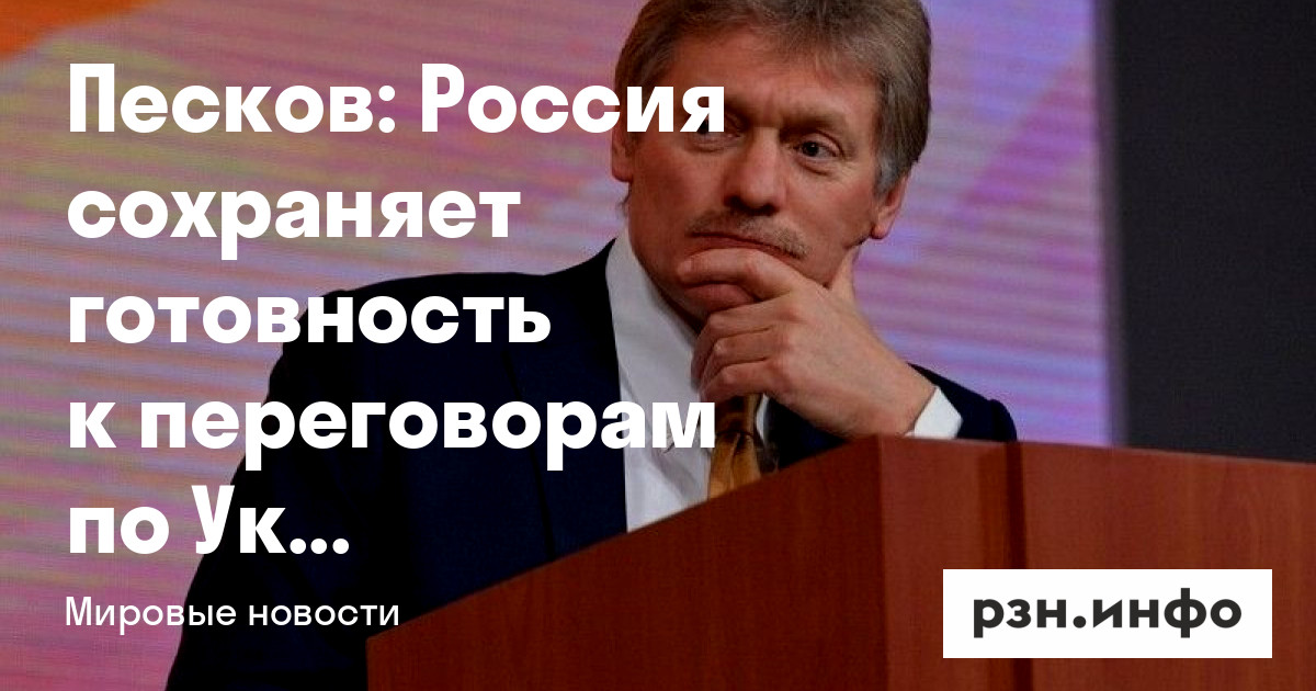 Песков: Россия сохраняет готовность к переговорам по Украине