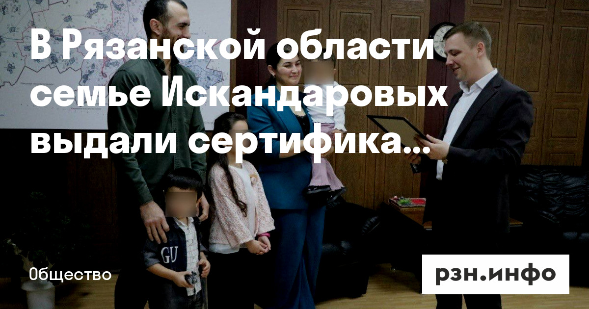 В Скопинском районе в среду, 12 марта, семье Искандаровых выдали сертификат на приобретение жилья. Об этом сообщил в соцсетях глава администрации района Михаил Ромодин.