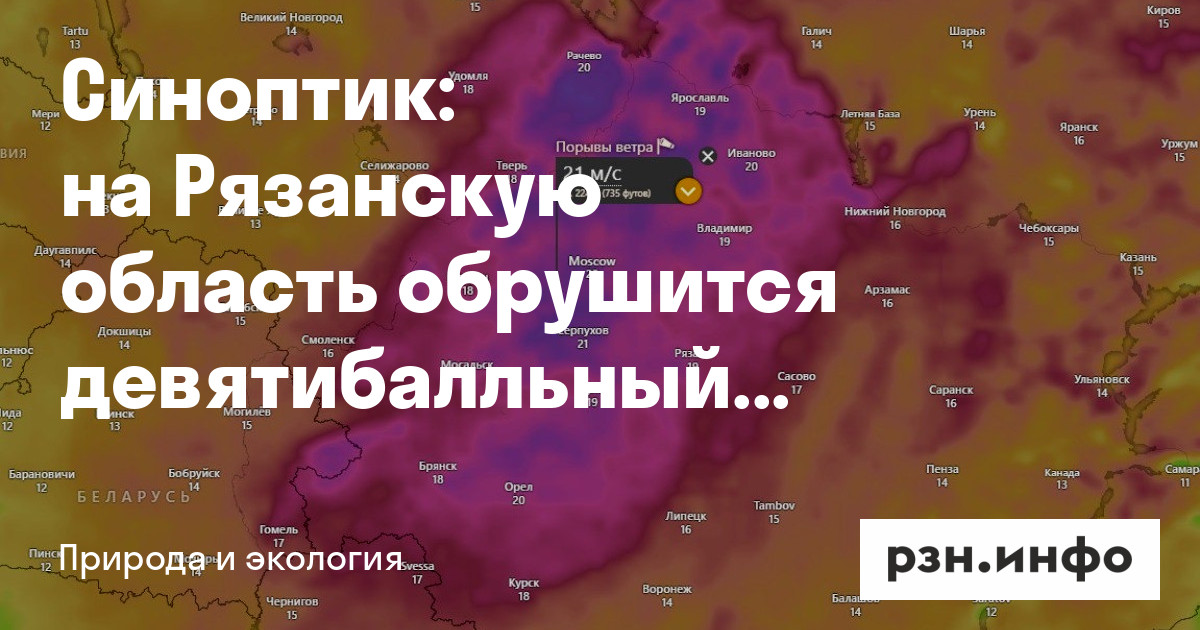 На Центральную Россию, в том числе на Рязанскую область, обрушится девятибалльный шторм. Об этом сообщил синоптик Евгений Тишковец в соцсетях.