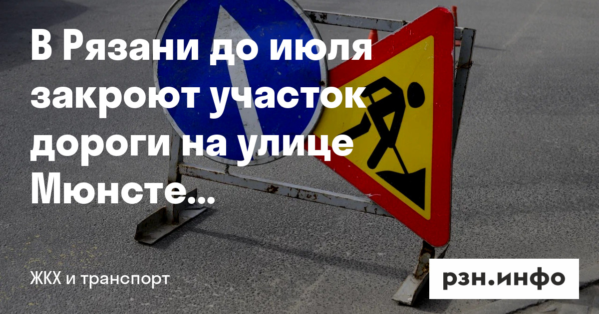 В Рязани до июля закроют участок дороги на улице Мюнстерской