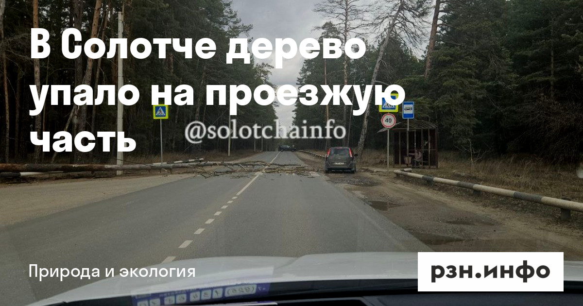 В Солотче дерево упало на проезжую часть. Об этом сообщает Telegram-канал «Солотча инфо».
