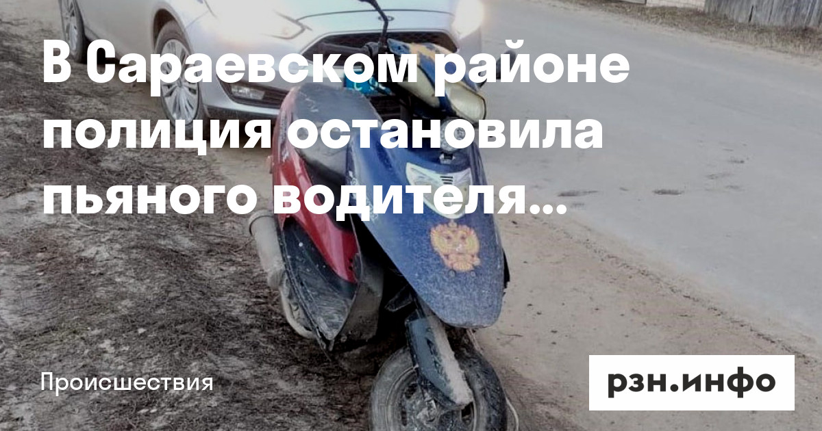 В Сараевском районе полиция остановила пьяного водителя скутера. Об этом сообщает ИД «Пресса» со ссылкой на местную ГАИ.