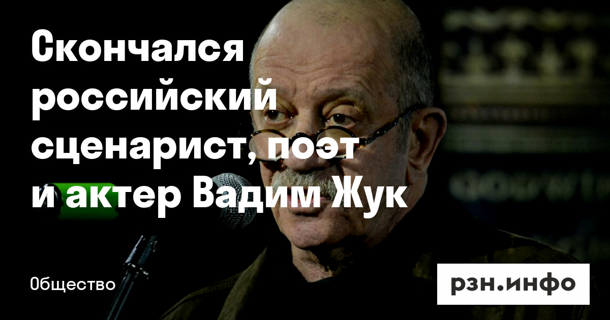 Скончался российский сценарист, поэт и актер Вадим Жук. Об этом пишет РБК со ссылкой на его жену Марину Курчевскую.