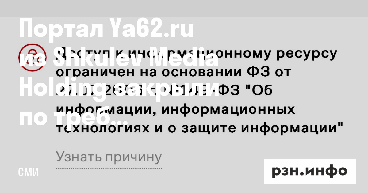 Рязанский портал Ya62.ru, входящий в структуру Shkulev Media Holding, заблокировали.