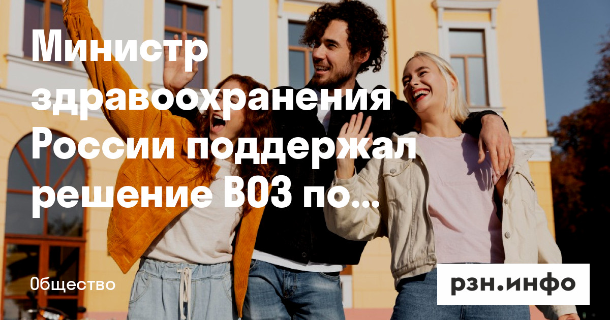 Министр здравоохранения России поддержал решение ВОЗ повысить возраст молодежи