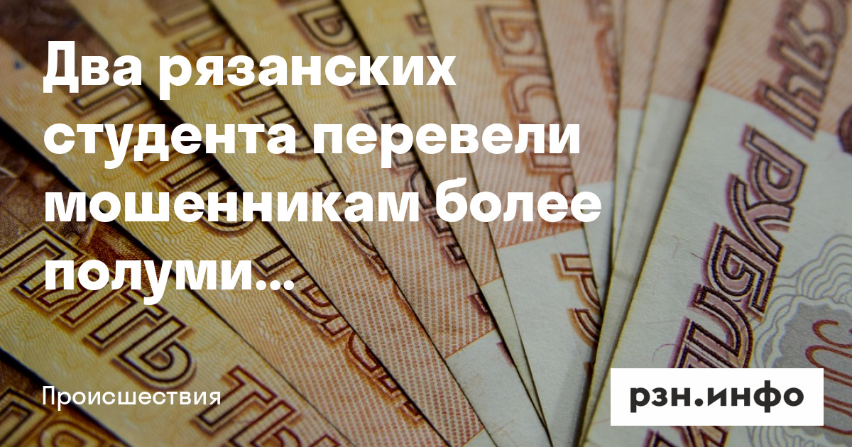 Два рязанских студента перевели мошенникам более полумиллиона рублей. Об этом сообщает