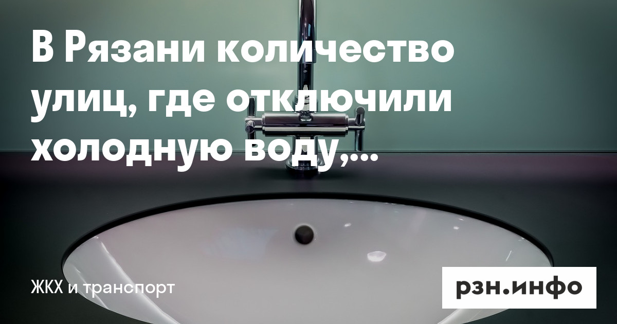 Количество улиц, где из-за работ «Водоканала» отключили холодную воду, увеличилось до шести. Об отключении холодной воды РЗН. Инфо сообщили жители многоэтажки на Касимовском шоссе 69. В «Водоканале» робот сообщил, что холодной воды нет по следующим адресам: улица Макаренко; улица Дзержинского; улица Стройкова; улица Пушкина; Проезд Шабулина; Касимовское шоссе. Водоснабжение планируют вернуть в 17:00, 17 апреля.