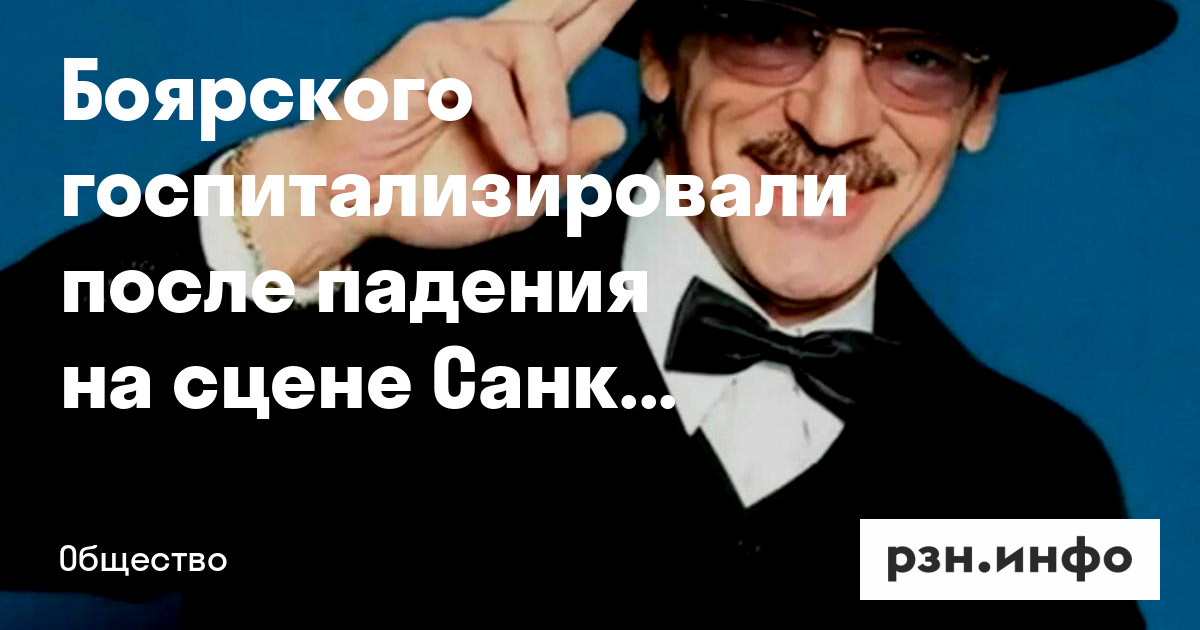 Михаила Боярского госпитализировали после падения на сцене Санкт-Петербургского театра имени Ленсовета. Об этом пишет ТАСС.