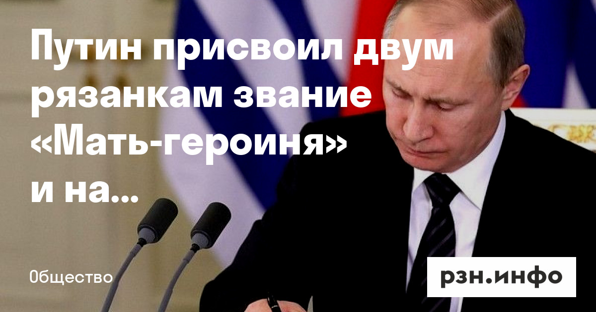 Владимир Путин присвоил двум рязанкам звание и наградил одну семью орденом. Соответствующий указ опубликовали на официальном сайте президента.