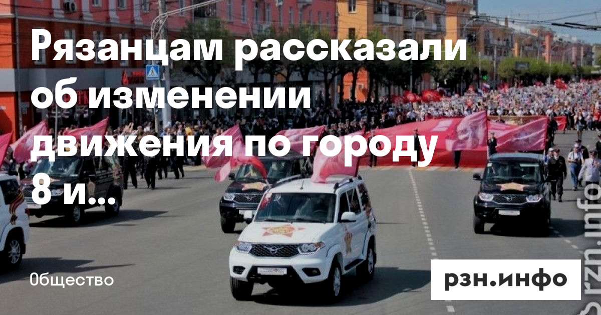 Рязанцам рассказали об изменении движения по городу 8 и 9 мая. Об этом сообщает пресс-служба мэрии.