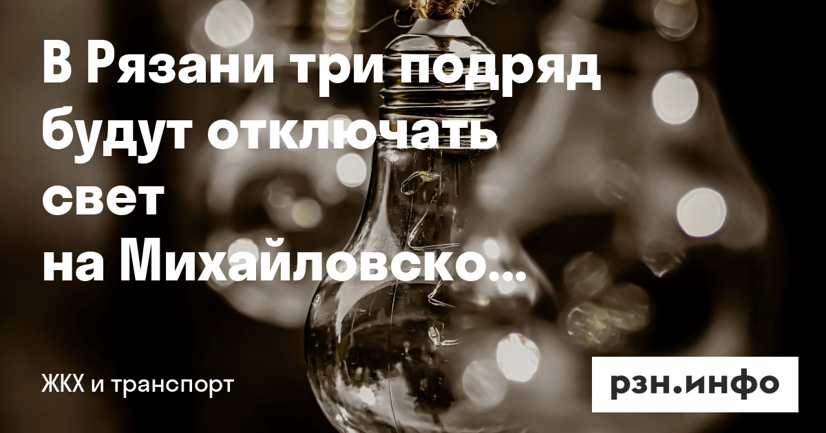 В Рязани три подряд будут отключать свет на Михайловском шоссе