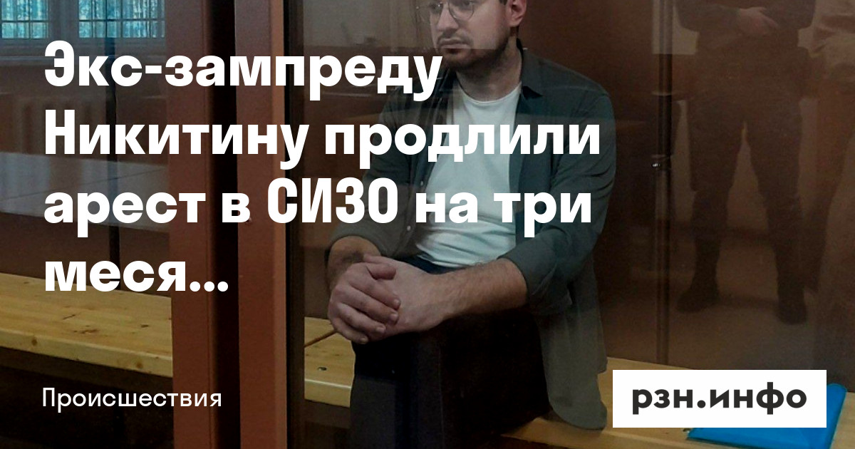 Экс-зампреду правительства Рязанской области Артему Никитину продлили арест в СИЗО на три месяца. Об этом сообщила корреспондент РЗН. Инфо из зала Советского районного суда во вторник, 22 апреля.