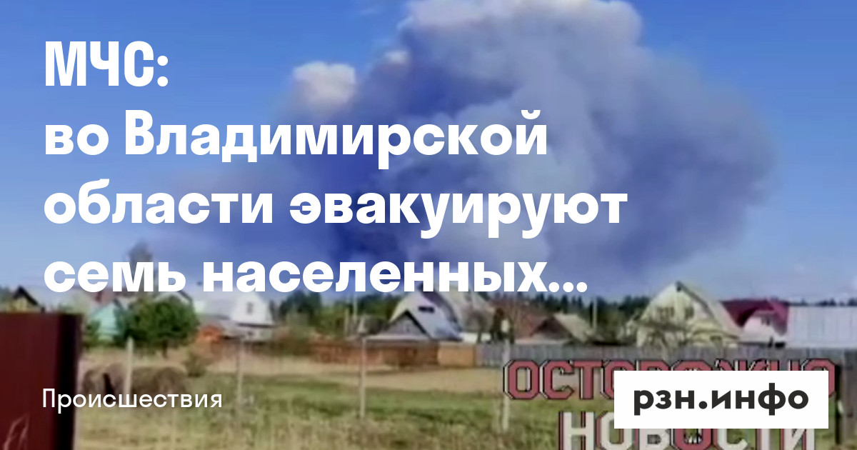 Во Владимирской области эвакуируют семь населенных пунктов после взрывов. Об этом сообщает ГУ МЧС России в соцсетях.