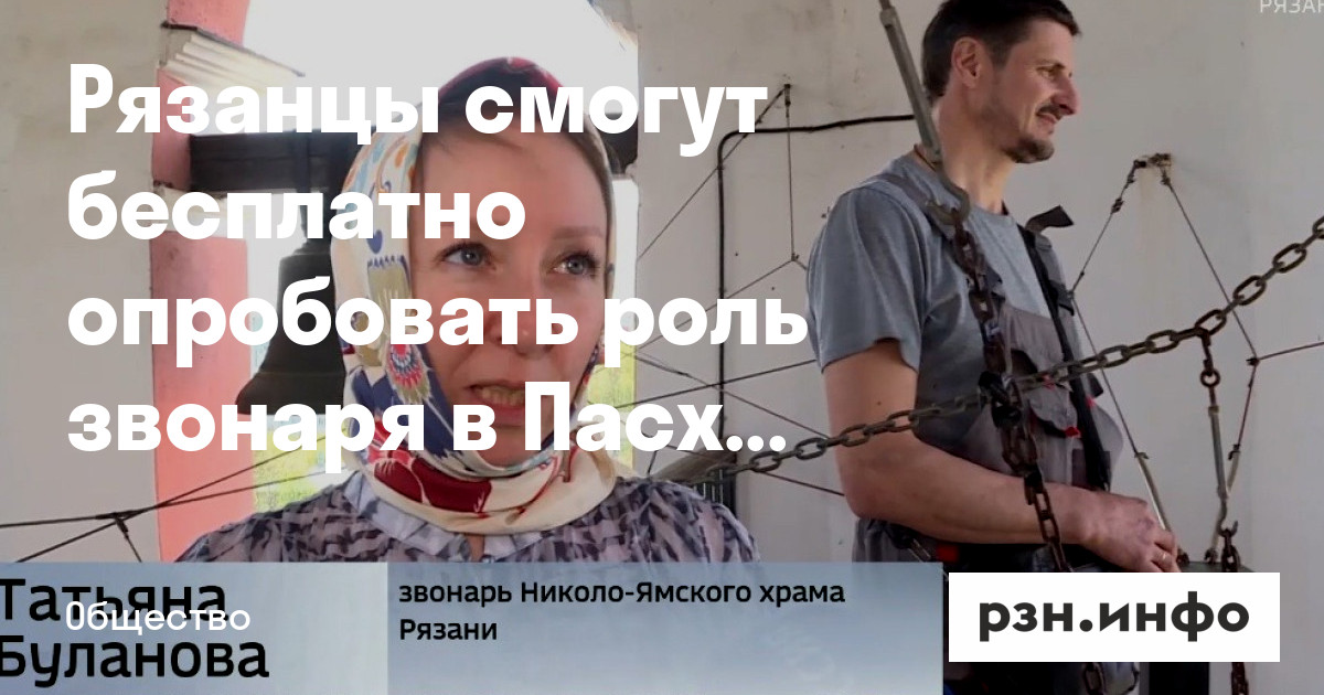 Рязанцы смогут бесплатно опробовать роль звонаря в Пасхальную неделю в Николо-Ямском храме. Об этом сообщили в сюжете телеканала ГТРК «Ока».
